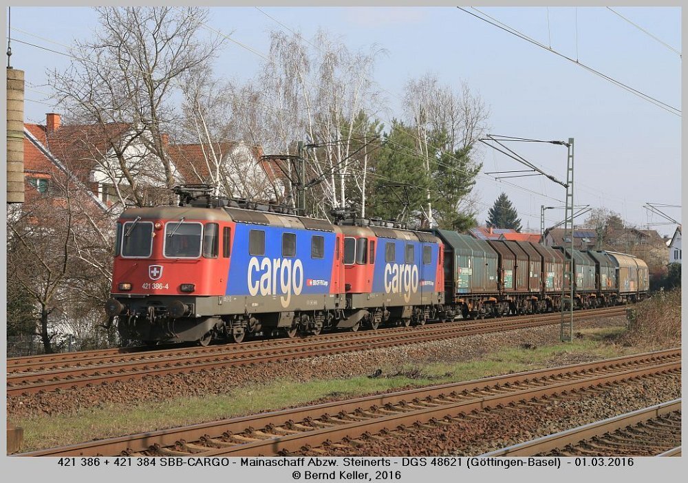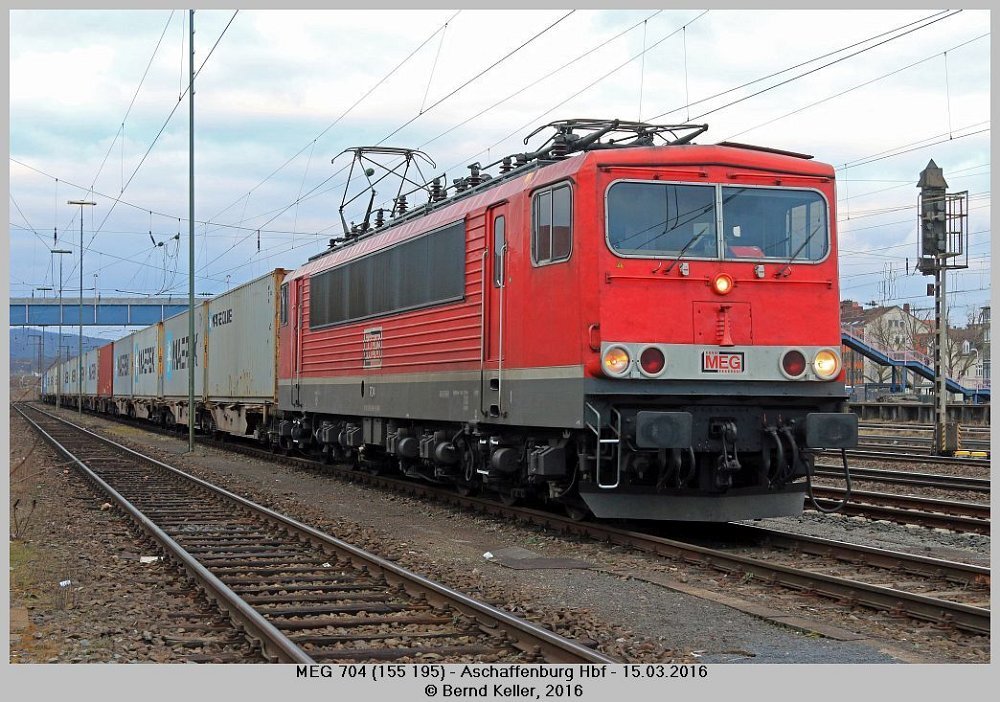 421 386 + 421 384 SBB-CARGOMainaschaff Abzw Steinerts / 01.03.2016 / DGS 48621 Göttingen - Basel 01 533 + 52 8154Hanau Hbf / 04.03.2016 / DLr 24236 Scheuerfeld - Würzburg Zell - [Ampfelwang] 110 491 BTEKahl / Main, 07.03.2016 / DLr 24493 Limburg-Nürnberg 140 856 BAYERNBAHNMainaschaff / 09.03.2016 / DGS 59941 Langenfeld - Gunzenhausen 143 166 ++ 143 242Mainaschaff / 09.03.2016 115 198Osnabrück Hbf / 12.03.2016 140 070 EBM-CARGODüsseldorf Hbf / 12.03.2016 ES 64 U2-036 HKXOsnabrück Hbf / 12.03.2016 245 009Koblenz-Lützel / 13.03.2016 E10 1309Koblenz-Lützel / 13.03.2016 / Schupperfahrten Köln-Linz-Koblenz-Köln E10 1309Neuwied / 13.03.2016 / Schupperfahrten Köln-Linz-Koblenz-Köln 111 056Laufach Bk Eisenwerk / 14.03.2016 / RE Frankfurt - Würzburg 151 018 LOKOMOTIONHösbach / 15.03.2016 MEG 704 [155 195]Aschaffenburg Hbf / 15.03.2016 140 856 BAYERNBAHNStockstadt / 17.03.2016 / DGS 59941 Langenfeld-Gunzenhausen 1825 SNCB [186 217]Stockstadt / 17.03.2016 146 246 BAHNLAND BAYERNHösbach / 18.03.2016 / RE Würzburg - Frankfurt 193 817 RETRACKLaufach Bk Eisenwerk / 18.03.2016 140 856 BAYERNBAHNLaufach / 19.03.2016 / Henkelzug DGS 59943 Langenfeld-Gunzenhausen 470 504 GYSEV - 140 JAHRE RAABERBAHNHösbach / 19.03.2016 Februar 2016April 2016
