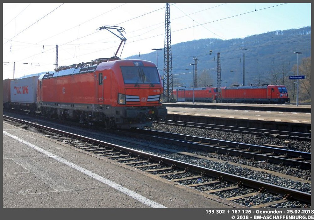Kleinheubach / 10.02.2018 Miltenberg / 10.02.2018 Obernburg-Elsenfeld / 10.02.2018 / Üg Miltenberg - Aschaffenburg Aschaffenburg Hbf / 07.02.2018 Mainaschaff / 12.02.2018 / Lr nach F-Griesheim Laufach Stockacker / 13.02.2018 / IC 2024 Laufach Stockacker / 16.02.2018 Hanau Hbf / 18.02.2018 / IC 1993 Berlin - Frankfurt Laufach Stockacker / 12.02.2018 / DbZ 24172 M-Allach - Möchengladbach Laufach Falkenberg Tunnel / 17.02.2018 Laufach Stockacker / 17.02.2018 / IC 2226 Laufach Stockacker / 13.02.2018 / Gartner-Zug Goldbach / 18.02.2018 Aschaffenburg Däfler / 19.02.2018 / Messzug Miltenberg - Aschaffenburg Laufach Stockacker / 20.02.2018 Aschaffenburg Däfler / 19.02.2018 / RB Aschaffenburg-Miltenberg Aschaffenburg Gbf / 19.02.2018 Laufach Stockacker / 24.02.2018 Gemünden / 25.02.2018 Aschaffenburg Gbf / 27.02.2018 Dezember 2018Januar 2018