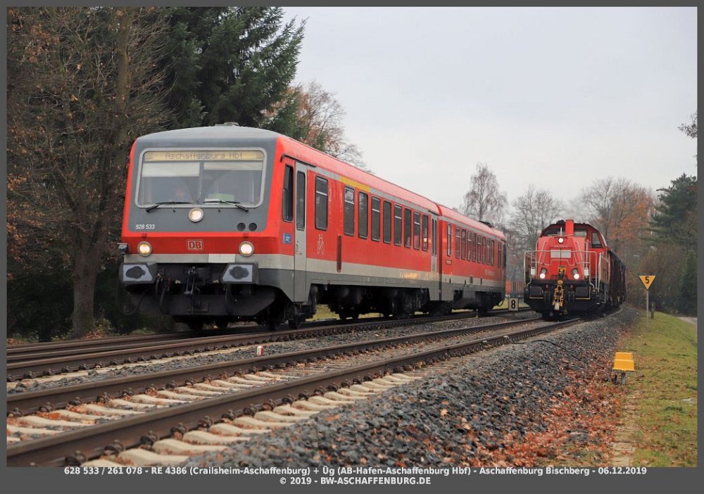 Aschaffenburg Hbf / 01.12.2019 / Offizieller 628er Abschied Obernburg-Elsenfeld / 01.12.2019 /Offizielle 628er Abschiedsfahrt Faulbach / 01.12.2019 /Offizielle 628er Abschiedsfahrt Breitendiel / 01.12.2019 /Sonderfahrt Hanau-Miltenberg-Amorbach-Walldürn Elsenfeld / 01.12.2019 / Sonderfahrt Hanau-Miltenberg-Amorbach-Walldürn Faulbach / 01.12.2019 /Offizielle 628er Abschiedsfahrt Walldürn / 01.12.2019 /Sonderfahrt Hanau-Miltenberg-Amorbach-Walldürn Mainaschaff Abzweig Steinerts / 02.12.2019 Aschaffenburg Bischberg / 03.12.2019 / RE 4396 Crailsheim-Aschaffenburg bei Schneeberg / 01.12.2019 /Sonderfahrt Hanau-Miltenberg-Amorbach-Walldürn Mainaschaff / 04.12.2019 / IC 1919 Mainaschaff / 05.12.2019 Mainaschaff Abzweig Steinerts / 05.12.2019 / Überführung Mälartag Triebzüge Aschaffenburg Bischberg / 06.12.2019 / RE 4396 + Üg Aschaffenburg Süd / 06.12.2019 / RB Aschaffenburg Süd - Aschaffenburg Hbf Untertheres / 07.12.2019 / Sonderzug Meiningen-Bamberg Untertheres / 07.12.2019 / Sonderzug Chemnitz-Würzburg Würzburg Hbf / 07.12.2019 Aschaffenburg Hbf / 08.12.2019 Aschaffenburg Hbf / 13.12.2019 / RB Aschaffenburg Hbf - Aschaffenburg Süd August 2019Februar 2019