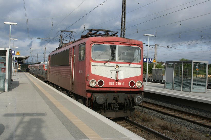 Diese mittlerweile seltene Lackiervariante an dieser Lok der Baureihe 155 passierte am 20.08.2006 mit ihrem