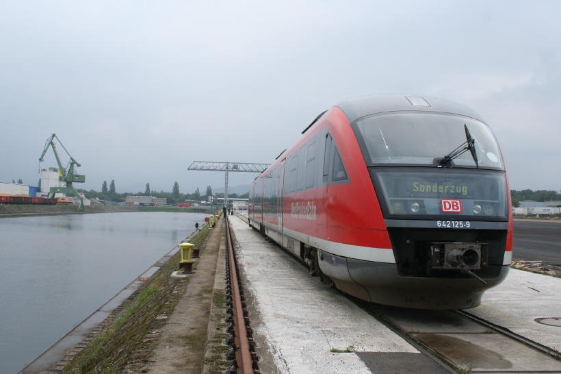 Die Westfrankenbahn unternahm mit einem Desiro am 21.08.2006 zwei Pendelfahrten in den Aschaffenburger Hafen.