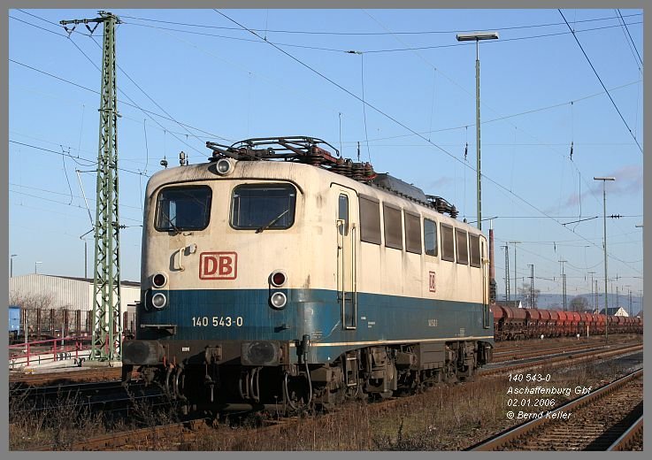 Über die Jahreswende 2005/06 gastierte eine Lok der Baureihe 140 - in mittlerweile raren Farbgebung ozeanblau-beige - im Aschaffenburger Gbf.
