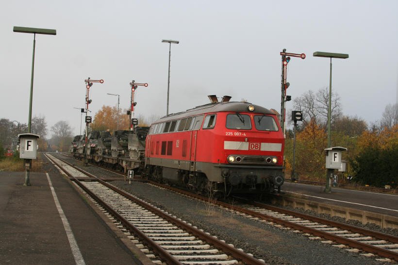 Der LÜ-Verkehr auf der Maintalbahn (Aschaffenburg-Miltenberg). Am 16.11.2006 druchfuhr der LÜ mit Bundeswehr-Panzern den Bahnhof Miltenberg.