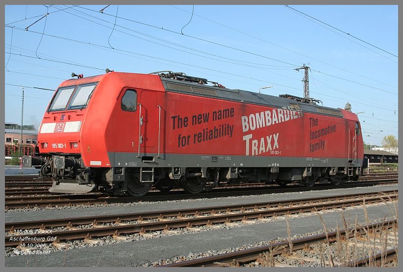 Mittlerweile wurden über 260 Stück der Baureihe 185 gefertigt. Am 10.10.06 besuchte 185 003 - die mit Eigenwerbung des Herstellers