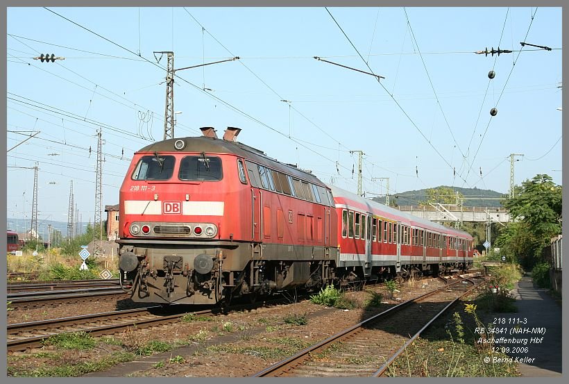 Beide Nürnberger 111er fuhren am 11.09.2006 in Doppeltraktion und als Leerzug wohl nach Frankfurt Hbf.