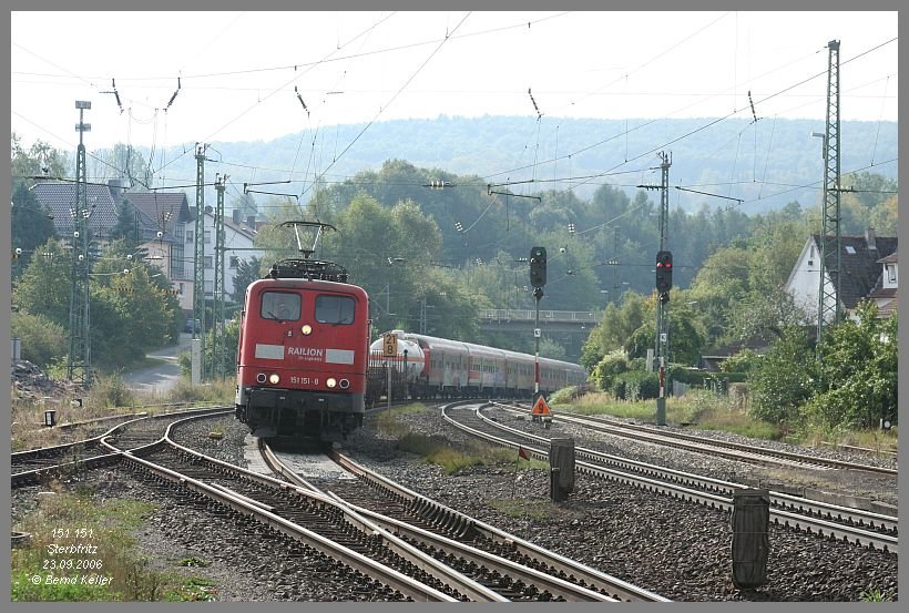 Stellvertretend für die vielen Lokomotiven der RAILION Logistics, die uns am 23.09. in Sterbfritz begegneten, steht die 151 151.
