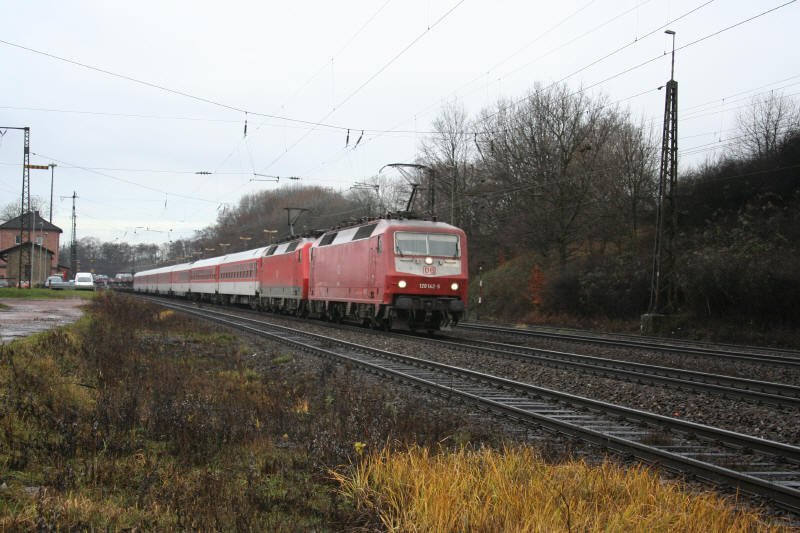 Gleich zwei Lokomotiven der Baureihe 120 am AutoreiseZug "Christopherus" auf dem Weg von Düsseldorf Hbf nach München Ost - hier bei der Durchfahrt…