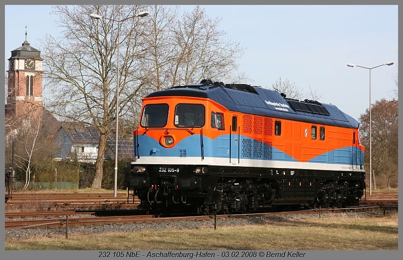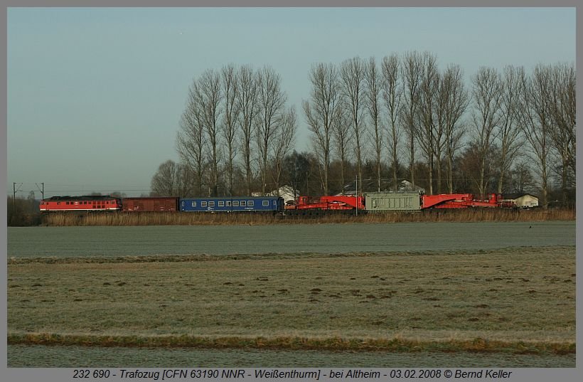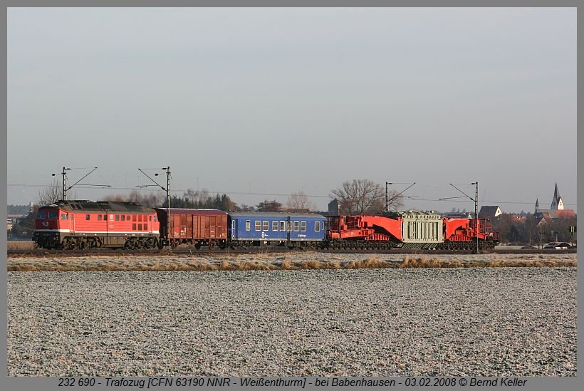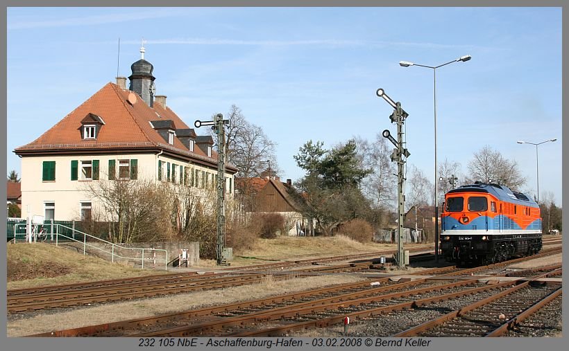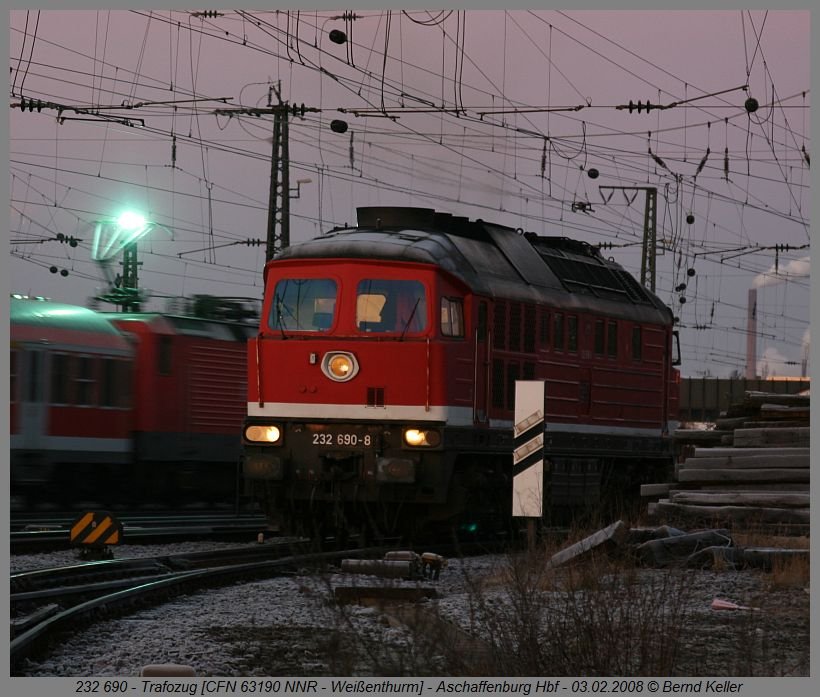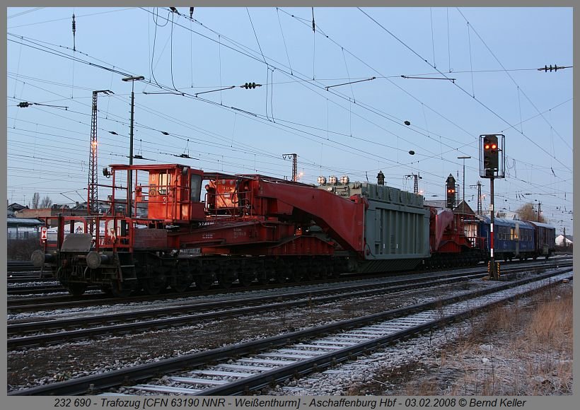 03.02.2008 - Ludmilla-Day rund um Aschaffenburg - Trafozug mit 232 690 und NbE 232 105 verlässt Aschaffenburg-Hafen in Richtung Ostdeutschland