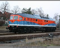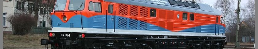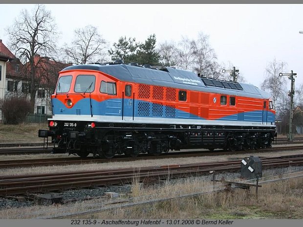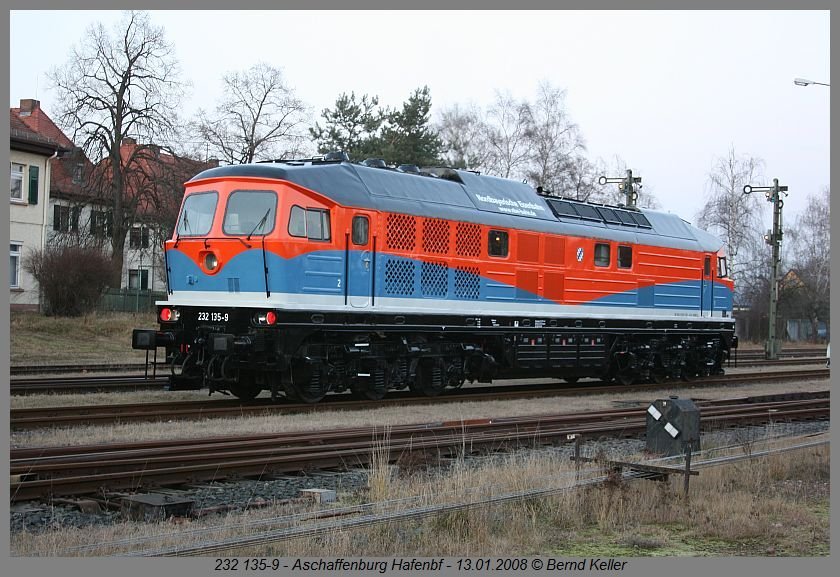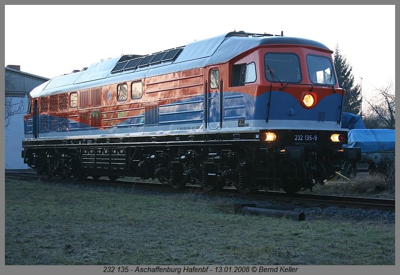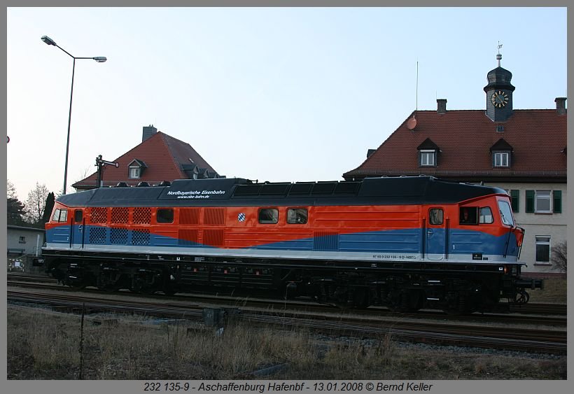 Im neuen Farbkleid präsentiert sich am 13.01.2008 die NbE 232 135 im "Heimat"-Bahnhof - Aschaffenburg-Hafen.