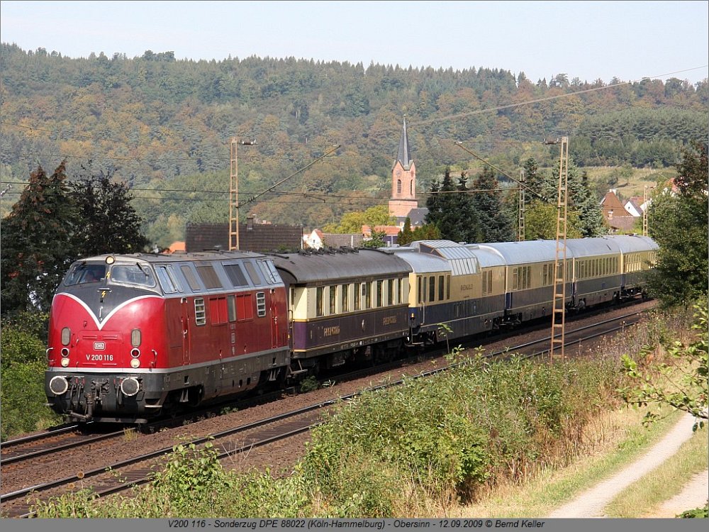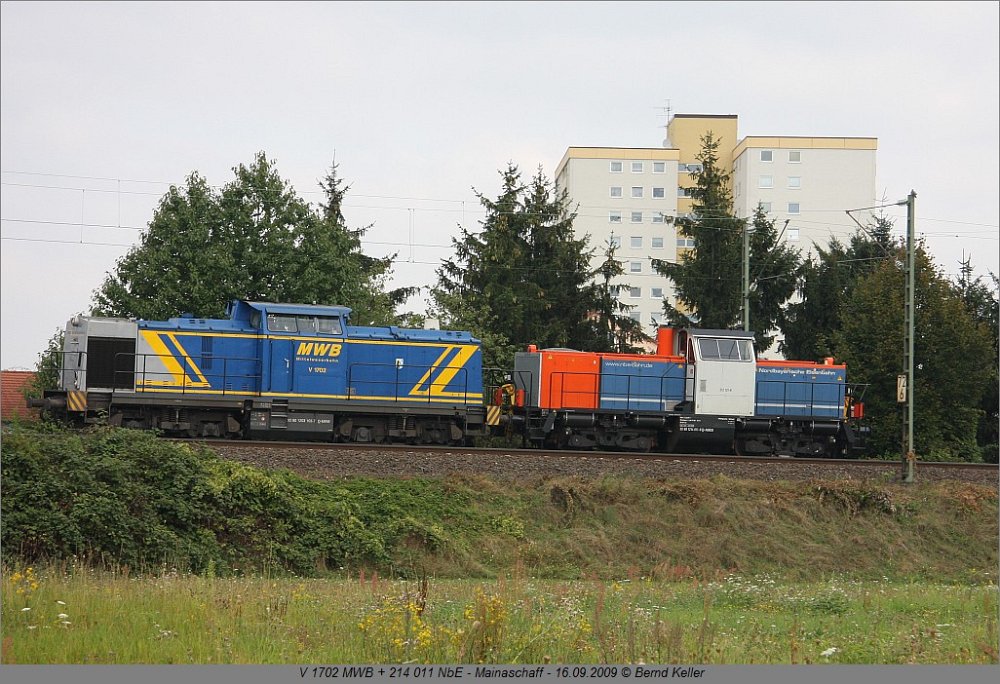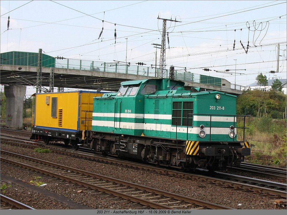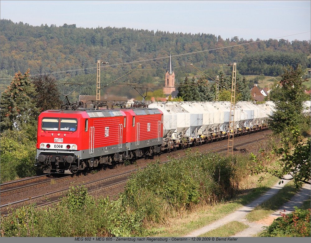 602 + 605 MEG12.09.2009, Obersinn, Zementzug nach Regensburg 185 576 ATC12.09.2009, Obersinn V200 11612.09.2009, Obersinn, Sonderzug Köln-Hammelburg V200 1162.09.2009, bei Wolfsmünster, Sonderzug Köln-Hammelburg V200 11612.09.2009, Gräfendorf, Sonderzug Köln-Hammelburg V200 11612.09.2009, bei Hammelburg, Sonderzug Köln-Hammelburg V200 11612.09.2009, Hammelburg, Sonderzug Köln-Hammelburg V200 11612.09.2009, Hammelburg, Sonderzug Köln-Hammelburg V200 11612.09.2009, Laufach, Sonderzug Hammelburg-Köln 1020 041 MWB12.09.2009, Laufach-Hain, Schub Locon-Zug 101 101 EUROPA12.09.2009, Laufach-Hain, IC 2327 232 107 NbE15.09.2009, Aschaffenburg 140 85015.09.2009, Aschaffenburg 714 00415.09.2009, Aschaffenburg-Hafen V 1702 MWB + 214 011 NbE16.09.2009, Mainaschaff 185 630 HGK16.09.2009, Aschaffenburg 203 211 HGB18.09.2009, Aschaffenburg Hbf 294 66518.09.2009, Aschaffenburg, Schrottzug aus Hafen 01 06618.09.2009, Goldbach, Lr-Sonderzug nach Darmstadt-Kranichstein für Plandampfveranstaltung "Reisen wie vor 50 Jahren" 225 09918.09.2009, Aschaffenburg, Trafo-Zug AugustOktober