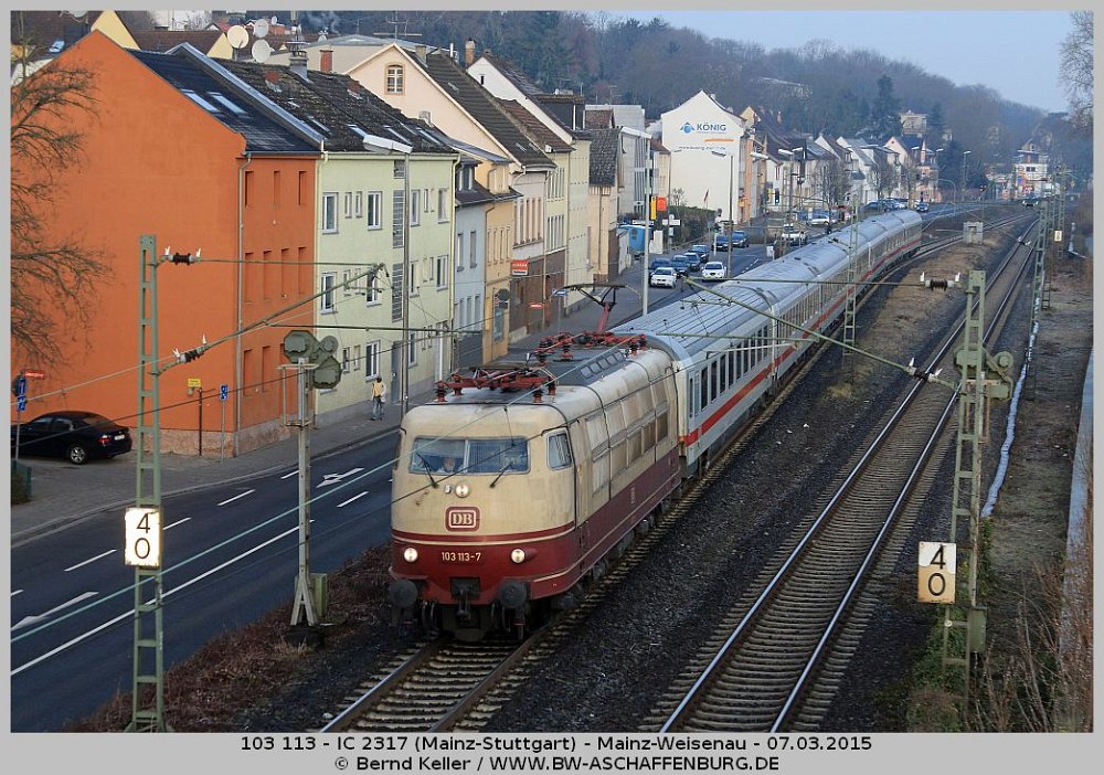 Aschaffenburg Hbf / 02.03.2015 Laufach / 04.03.2015 Oberwesel / 07.03.2015 / RE Koblenz - Frankfurt Mainaschaff-Steinerts / 02.03.2015 Mainz-Weisenau / 07.03.2015 / IC 2317 Mainz-Stuttgart Nantenbacher Brücke / 08.03.2015 / IC 2024 Roßsteintunnel / 07.03.2015 bei Langenprozelten / 08.03.2015 / RE Würzburg - Frankfurt Aschaffenburg Hbf / 09.03.2015 Aschaffenburg Hbf / 09.03.2015 Oberwesel / 07.03.2015 / Sonderfahrt Bonn - Mainz - Bonn Mainaschaff-Steinerts / 18.03.2015 Mainaschaff-Steinerts / 19.03.2015 Mainaschaff / 20.03.2015 Kahl / 20.03.2015 Goldbach / 26.03.2015 Hösbach / 22.03.2015 / RE Würzburg - Frankfurt Laufach Bk Eisenwerk / 28.03.2015 Goldbach / 22.03.2015 Laufach Bk Eisenwerk / 28.03.2015 FebruarApril