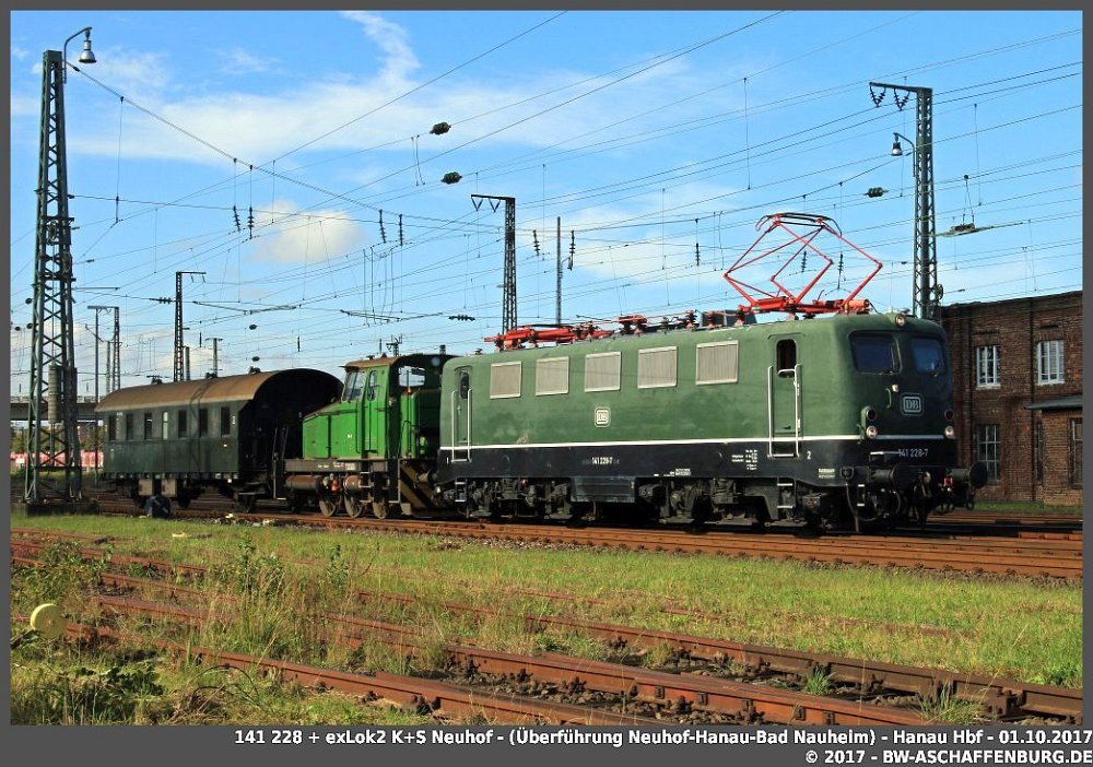 141 228 Hanau Hbf / 01.10.2017 110 276 CENTRALBAHNHanau Hbf / 01.10.2017 141 228 Hanau Hbf / 01.10.2017 141 228 Hanau Hbf / 01.10.2017 141 228 Hanau Hbf / 01.10.2017 193 777 LOKOMOTIONLaufach Bf / 01.10.2017 / DPE 51 Dortmund - Brenner 50 3552Beienheim / 03.10.2017 648 30 HLBBeienheim / 03.10.2017 218 392 DB NETZINSTANDHALTUNGLaufach Bf / 01.10.2017 646 414 + 646 421 HLBBeienheim / 03.10.2017 50 3552Beienheim / 03.10.2017 101 112 RHEINGOLDLaufach Bf / 09.10.2017 / IC 2024 412 002Laufach Stockacker / 09.10.2017 Laufach Stockacker / 12.10.2017 146 245Laufach Stockacker / 11.10.2017 185 631Laufach Hirschberg Tunnel / 12.10.2017 140 850 BAYERNBAHNLaufach Stockacker / 12.10.2017 185 374Laufach Bf / 13.10..2017 128 001Weimar Bw / 14.10.2017 242 151 + 242 145 + 142 110 + 211 049Weimar Bw / 14.10.2017 September 2017November 2017