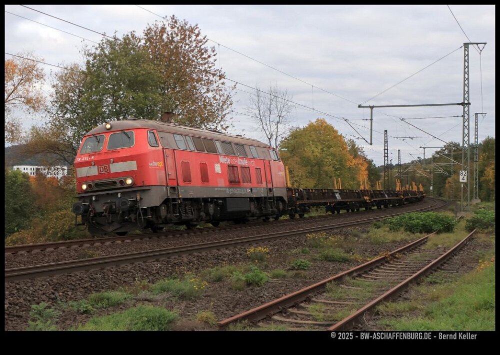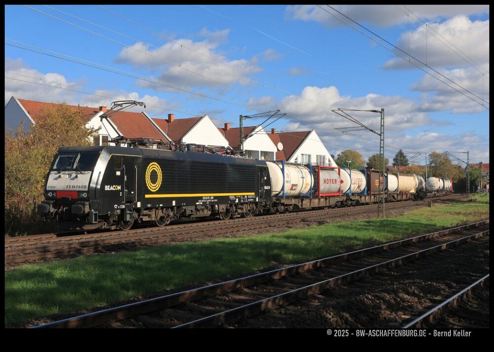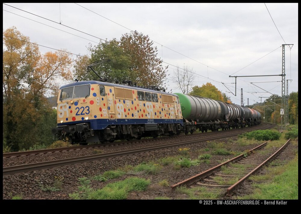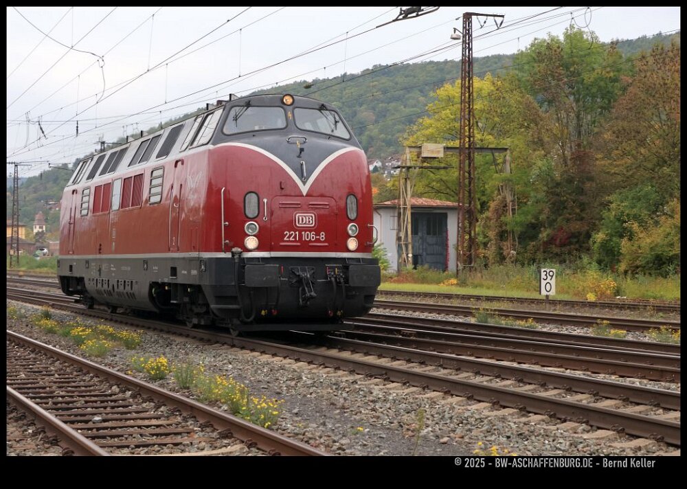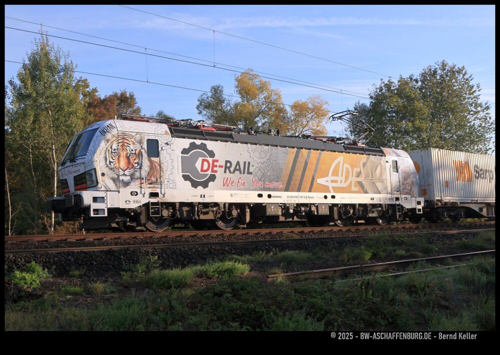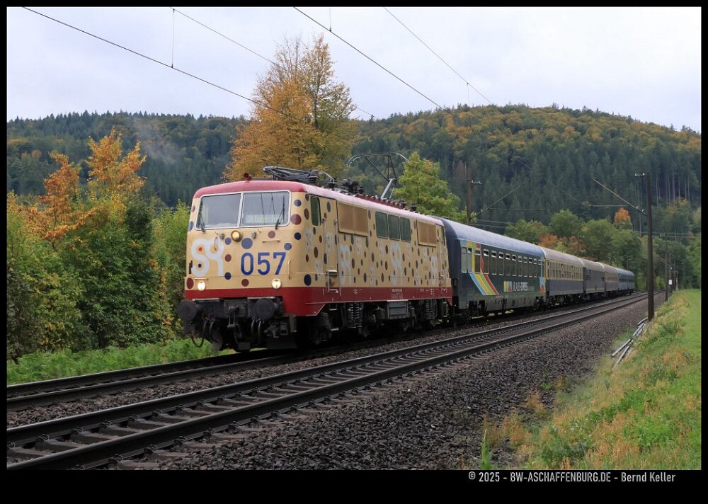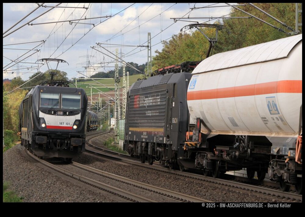 01 1104 + 01 1075Darmstadt-Kranichstein, 01.10.2025 193 167 ADESSO RAILHösbach, 03.10.2025 183 002 + 183 003 ALEXHösbach, 03.10.2025 241 014 HECTORRAILNeuhütten, 04.10.2025 111 057 SMARTRAILNeuhütten, 04.10.2025, Oktoberfest-Sonderzug 408 020 AMSTERDAM - 25 JAHRE ICE IN DIE NIEDERLANDEAschaffenburg Hbf, 10.10.2025 193 151 AME RAILLOGISTIKGemünden, 11.10.2025 221 106 ALTMARK RAILGemünden, 11.10.2025 120 143 + 181 215 SELGemünden, 11.10.2025 111 223 SMARTRAILHösbach, 12.10.2025 212 326 REDLERAschaffenburg Hbf, 15.10.2025 151 001 BAYERNBAHNAschaffenburg Hbf, 16.10.2025, Henkelzug 218 434 DB GEBRAUCHTZUGHösbach, 17.10.2025 187 101 - ES 64 F4-091 BEACONLaufach Stockacker, 18.10.2025 ES 64 F4-030 BEACONMainaschaff Abzw. Steinerts, 30.10.2025 September 2025